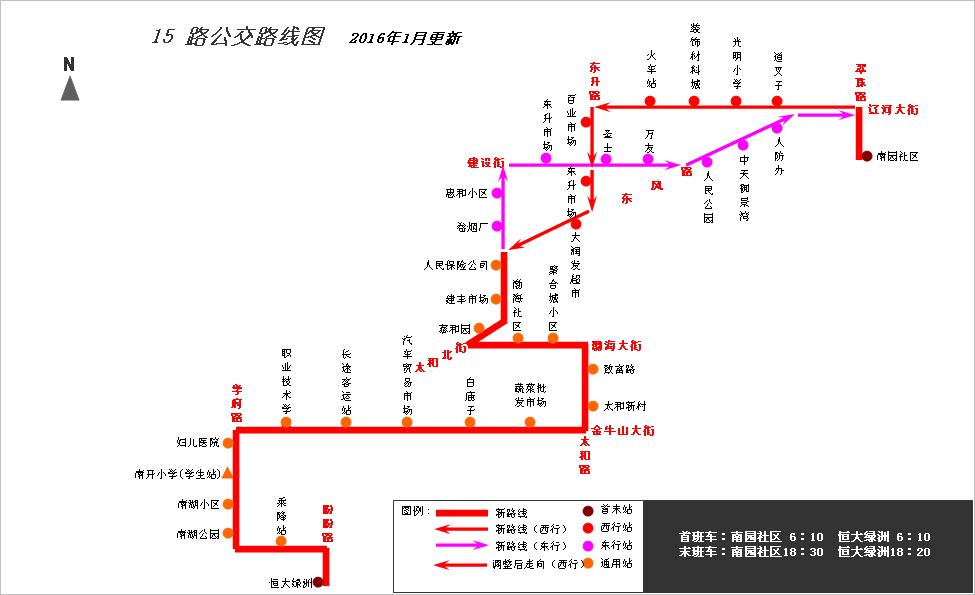 根據(jù)公交線路覆蓋區(qū)域要求,結(jié)合承包車(chē)主提出申請(qǐng),為方便青花大街與盼盼路交匯處以南附近小區(qū)居民乘坐公交出行,經(jīng)公司研究,從2016年1月26日起,對(duì)公交15路線路走向進(jìn)行局部調(diào)整,具體情況如下: