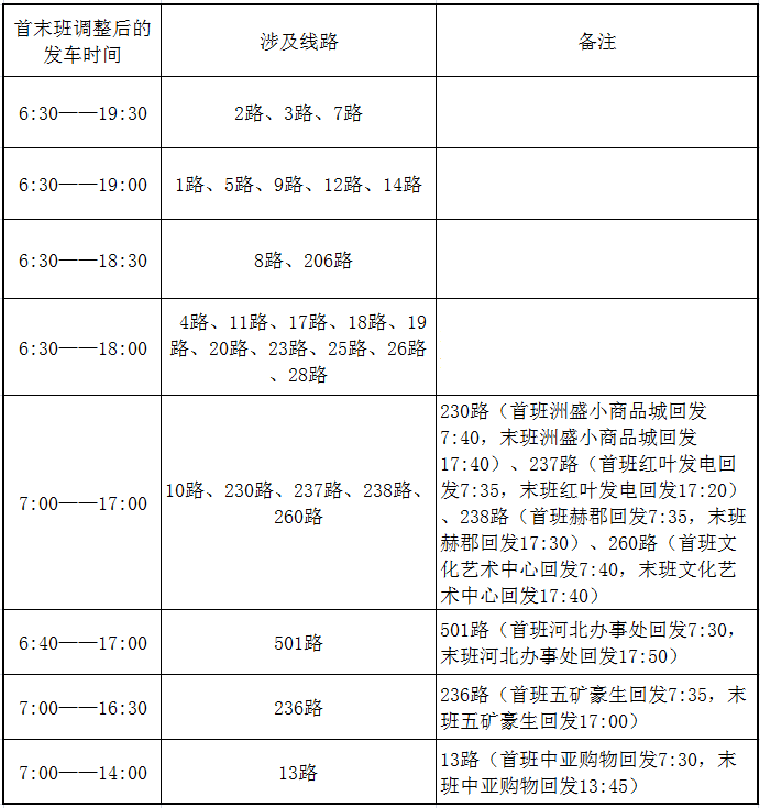 5.通養(yǎng)老服務(wù)中心班次:12路,2月15日—18日(三十至初三)首班車(chē)6:12(火車(chē)站)調(diào)整為6:30,其余班次不變;14路,2月15日—18日(三十至初三)首班車(chē)6:00(公司公司)調(diào)整為6:30,。
