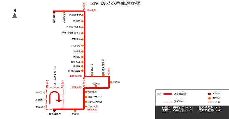 澄湖西路沿線“乘降站”(營(yíng)口匯豐工程機(jī)械制造公司)、進(jìn)步路沿線“進(jìn)步路”雙向站位、澄湖西路沿線“大族冠華”、“金湖水岸小區(qū)”、“自貿(mào)區(qū)管委會(huì)”、“五礦大廈”雙向站位,共計(jì)6處。(附:236路公交路線調(diào)整圖)